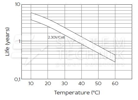 - Срок хранения без подзаряда: 6 мес. при 25°C;