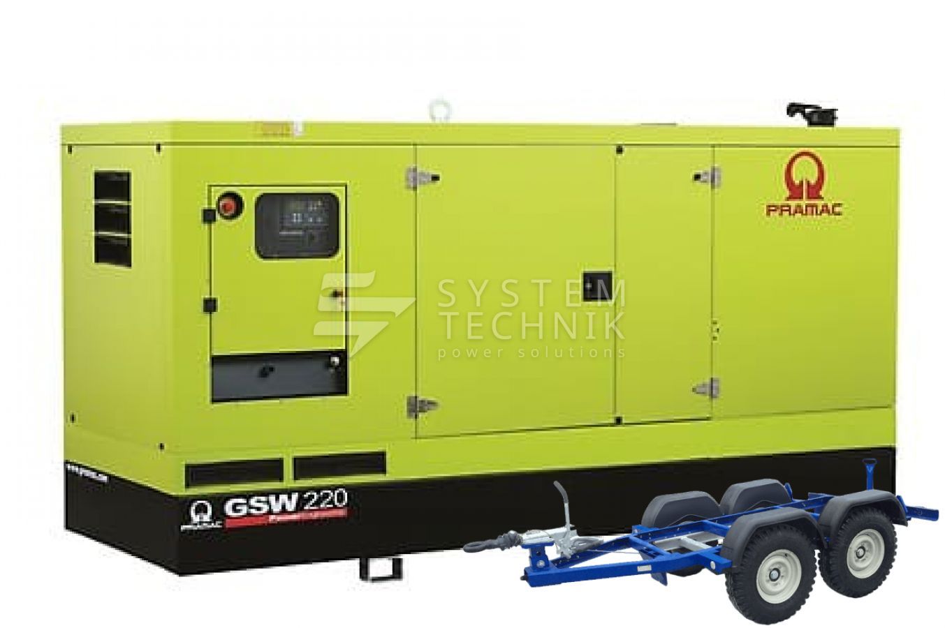 - Дизельный генератор Pramac GSW 220 I В кожухе на прицепе