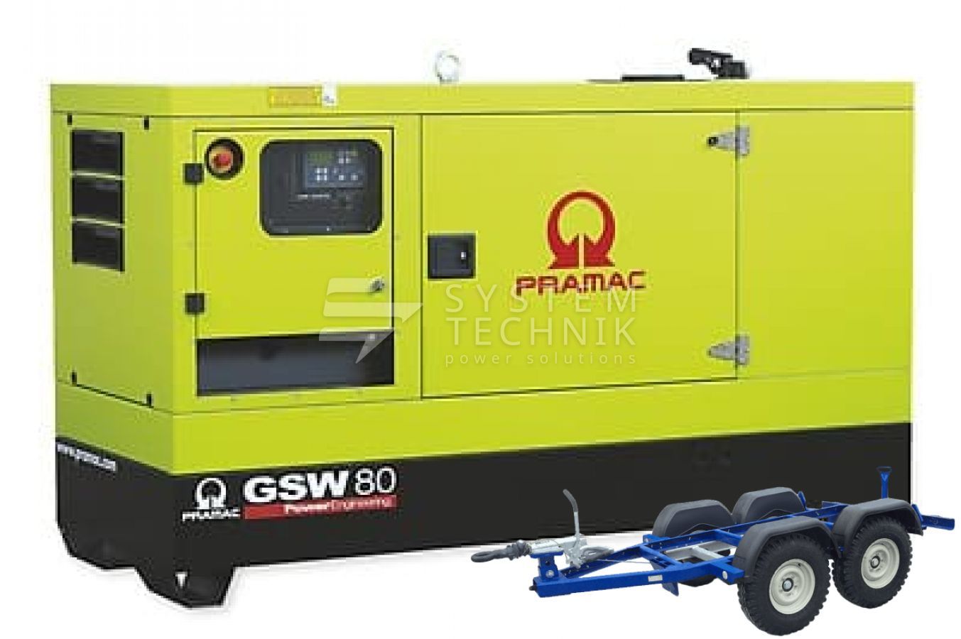 - Дизельный генератор Pramac GSW 80 I В кожухе на прицепе